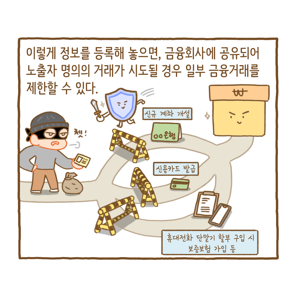 금융소비자의 노출된 개인정보를 타인이 이용해 명의도용 금융거래를 시도하는 것을 방지하는 시스템입니다.