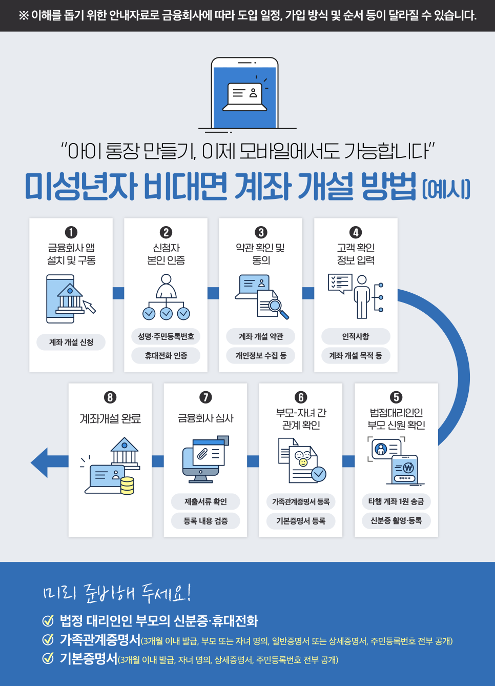 - 부모가 비대면 방식으로 미성년 자녀를 대리해 자녀 명의 계좌를 개설하는 것을 허용 -